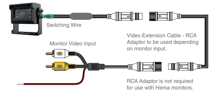 The HM-CAM15 functions as a rear-view camera as standard. To change the orientation to front or side view, please cut the white wire located at the base of the cable near the camera.