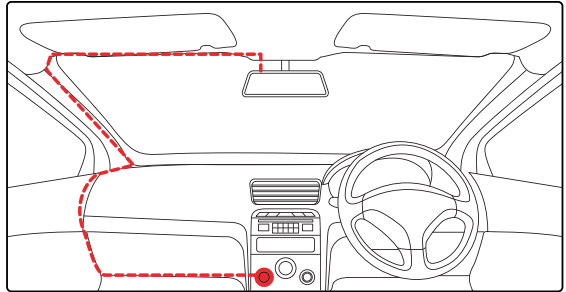- Run the cable along your vehicles console and windscreen and plug it into the Mirror DVR port marked with the USB icon