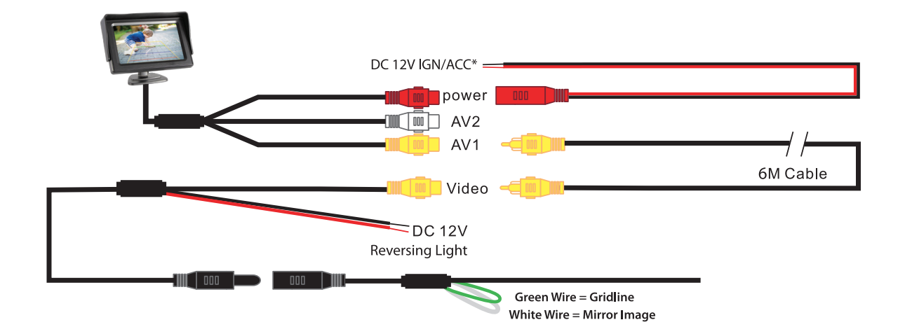 - Please follow the diagram to wire the camera to the monitor. Refer to a professional if you do not have any experience with this procedure or any like it.